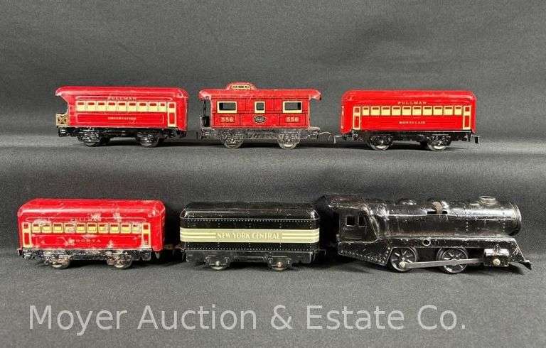 LOT 87 - Marx Steam Locomotive with Tender and 4 Tin Plate Passenger Cars