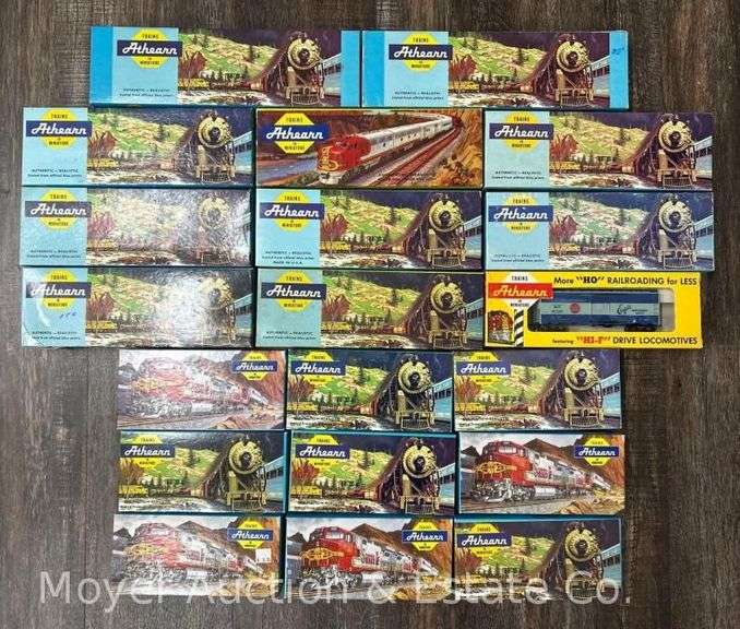 LOT 460 - (20) Athearn HO Scale Freight Cars, with HO Steam Locomotive, Mismatched Boxes