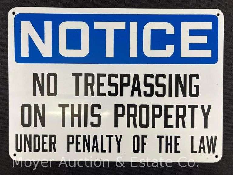 LOT 659 - Metal "Notice No Trespassing Sign", Single Sided, 10"x14"
